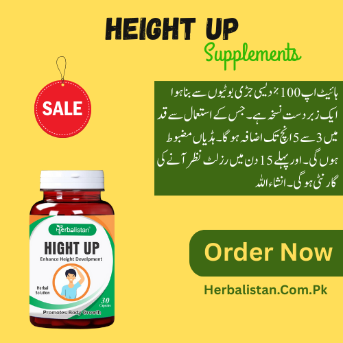 Height Up is a premium herbal supplement designed to promote natural height growth of 3-5 inches in just two months. Suitable for males and females over 10 years, it supports children, teens, and adults. Packed with natural ingredients like Ashwagandha, Calcium, and Vitamin D, Height Up strengthens bones, enhances posture, and boosts growth hormones. This safe, non-GMO formula is ideal for healthy bone development and increased confidence. Order now for best results and unlock your height potential with daily use!