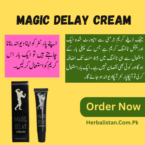 Magic Delay Cream is an imported, original German-made solution for premature ejaculation, designed to extend sexual performance up to 45 minutes. This 100% herbal, side-effect-free cream enhances timing by reducing penile sensitivity, ensuring longer-lasting intimacy. Simply apply 30 minutes before sex for optimal results. Ideal for men of all ages, it promotes confidence and satisfaction without compromising sensation. As the best cream for timing, Magic Delay Cream guarantees a mess-free, quick-absorbing application for a fulfilling experience. Order now to elevate your sexual stamina and enjoy prolonged pleasure effortlessly!