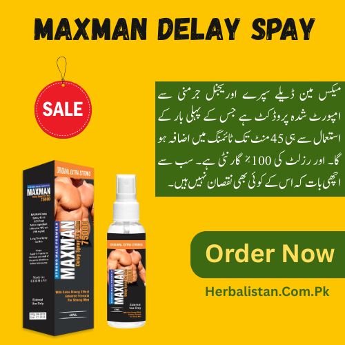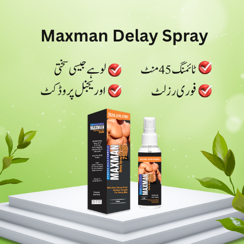 Maxman Delay Spray, a top-tier German import, is renowned as Pakistan’s best timing spray for men combating premature ejaculation. Its potent lidocaine-based formula desensitizes the penis, extending sexual performance by up to 45 minutes. Applied 15 minutes before intercourse with 3 short sprays (top, center, below), it ensures prolonged pleasure without compromising sensation. Odorless, tasteless, and condom-safe, Maxman enhances stamina, boosts confidence, and delivers satisfying intimate moments for both partners. With no side effects and a 45ml bottle offering multiple uses, it’s the ultimate choice for lasting sexual fulfillment.